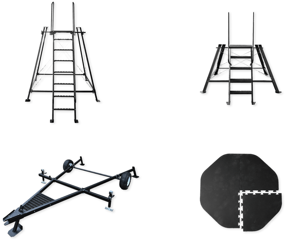 Elevate your hunting blind with one of our metal tower stands. Or combine a tower stand with our trailer system to create a mobile blind setup.